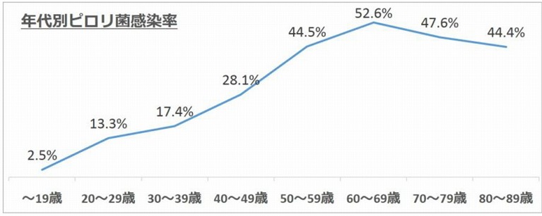 日本人のピロリ菌感染者数は約3,500万人といわれています。幼児期の胃の中は酸性が弱く、ピロリ菌が生きのびやすいため、ほとんどが5歳以下の幼児期に感染すると言われています。